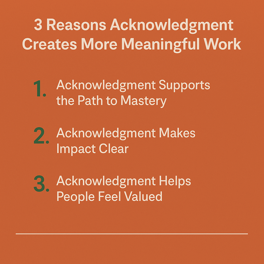 Acknowledgment helps create that meaning—not by sugarcoating or cheerleading, but by clearly naming what people have done.